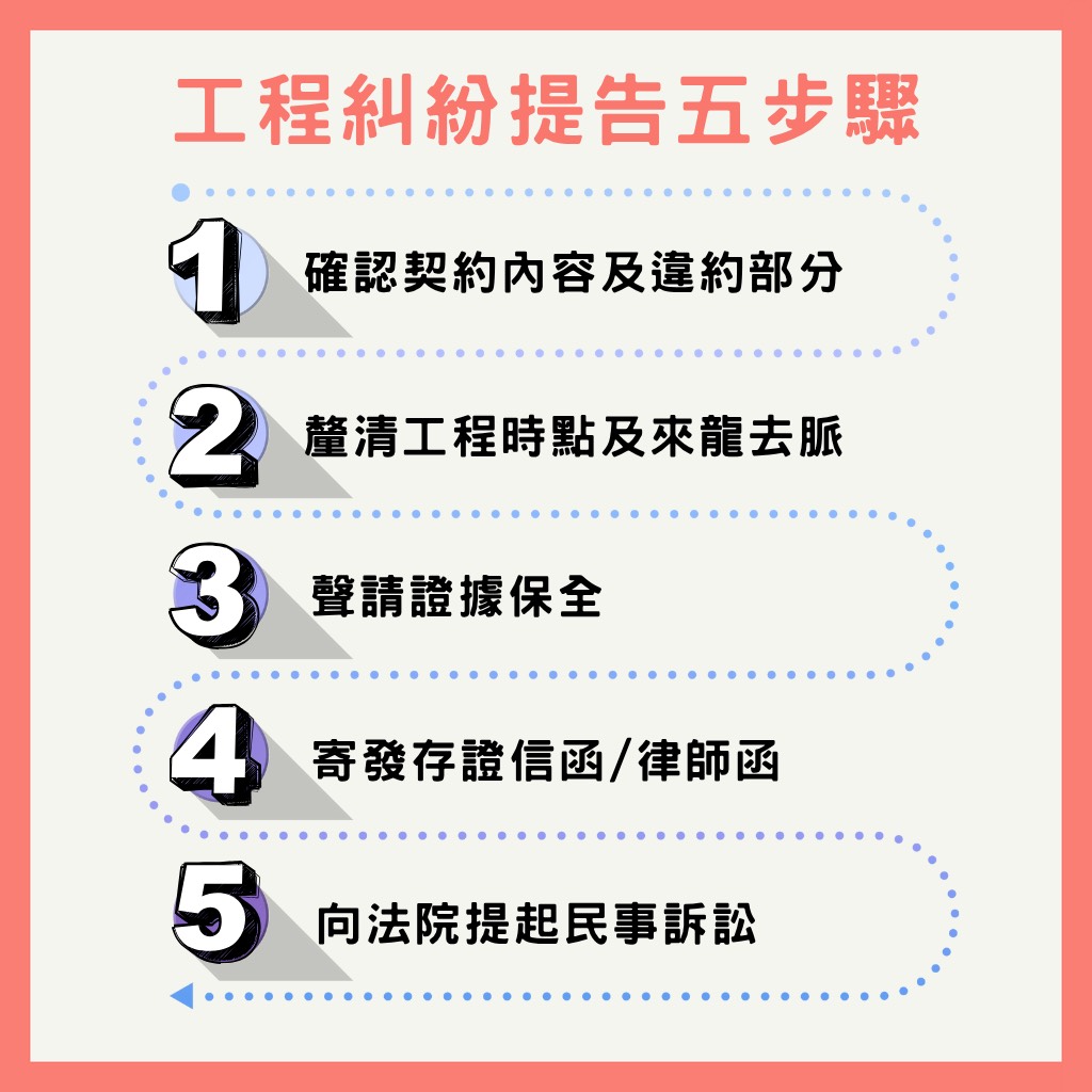 💡雙方在開工前,建議訂立明確的工程估價單及付款里程碑條款,並在每次變更或追加施工前補簽合約與價格確認書,以保障雙方權益。