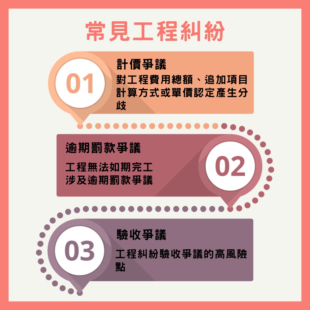 合約爭議涵蓋範圍廣泛,包括合約條款模糊、責任分工不明、設計圖與實際施工差異未修正等。舉例來說,若工期延誤是否應罰款?若未明訂,恐造成後續索賠困難。